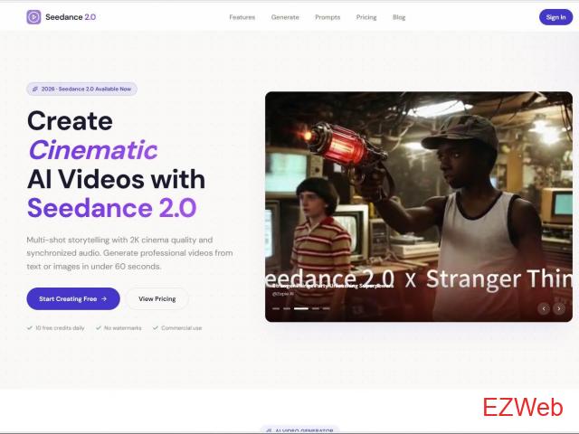 使用 Seedance 2.0 创作电影级 AI 视频,支持多镜头叙事,画面质量可达 2K 影院级,并可实现音频同步。只需不到 60 秒,即可根据文本或图像生成专业视频。https://seedance2-ai.studio/
