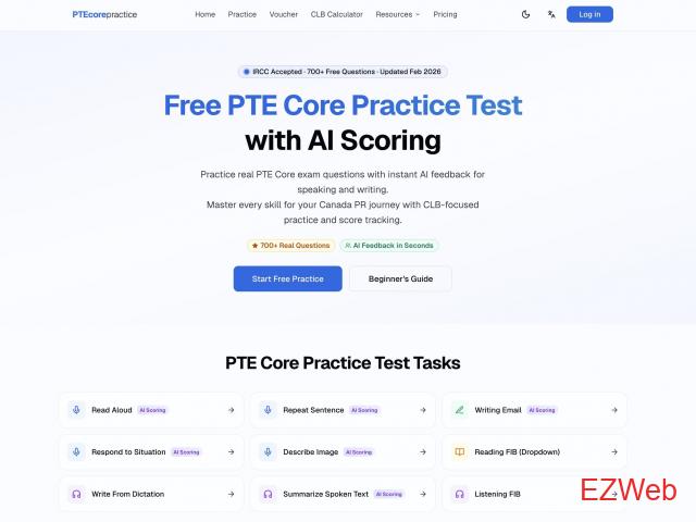 • Free PTE Core practice platform designed for PTE Core test takers applying for Canadian PR.