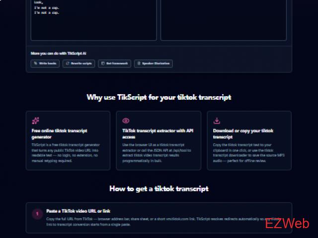 Shipped TikScript — paste a TikTok URL, get a real tiktok transcript, MP3 when available, subtitle translation, plus small AI helpers for rewrites and hooks. Runs on your Apify/Whisper keys if you self-host the stack. Try it: https://tikscript.org — feedback welcome (@ShanHai_AI).