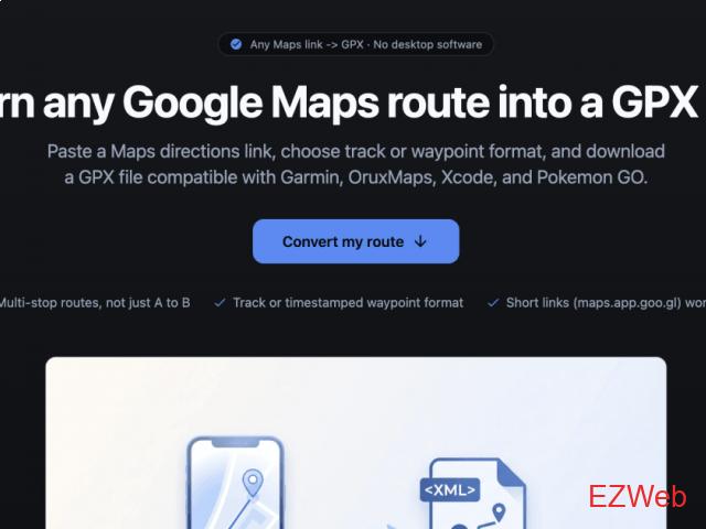 Turn any Google Maps route into a GPX file Paste a Maps directions link, choose track or waypoint format, and download a GPX file compatible with Garmin, OruxMaps, Xcode, and Pokemon GO. https://gmapstogpx.com/