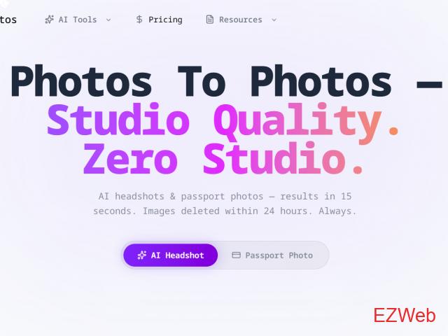 Photos To Photos  is an AI driven professional imaging tool that allows you to achieve studio level image quality without leaving your home. Whether it's creating passport/visa photos that meet the official standards of over 10 countries including the United States, China, the United Kingdom, and Japan, or generating exquisite avatars for workplace social platforms, it can be completed within 15 seconds. Photos To Photos adopts strict privacy protection, and all uploaded images are automatically deleted within 24 hours and will never be used for AI training. No need to download software, no need to book a photographer, just open the webpage and easily convert daily photos into compliant ID photos or high-end business image photos, simple and efficient, with outstanding quality.