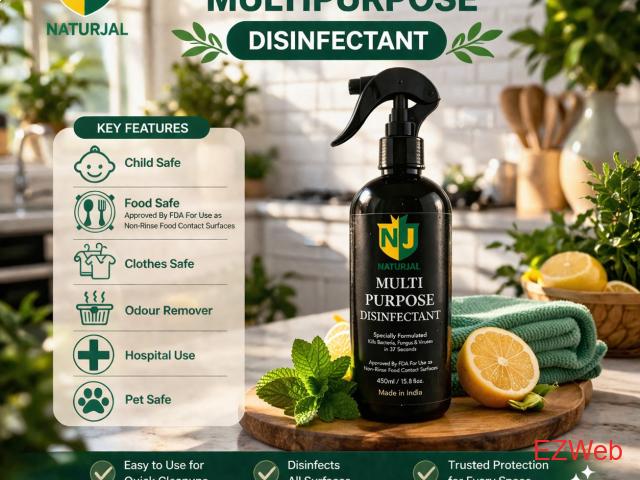 Naturjal brings you the Safest Multipurpose Disinfectant designed to keep your home, workplace, and public spaces clean and protected. This advanced formula effectively kills 99.9% of germs in just 37 seconds, ensuring powerful disinfection without harmful chemicals.