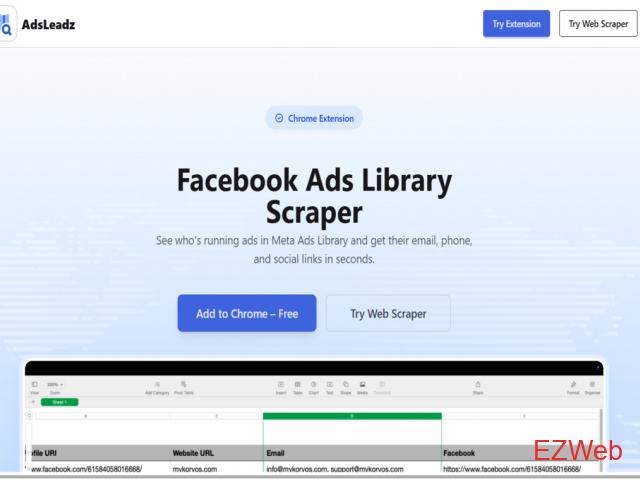19.00 $ AdsLeadz – Meta Ads Library Lead Extraction Tool