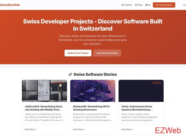SwissDevHub is a curated directory and community platform for Swiss developers and digital product creators. It showcases Swiss-made software, apps, SaaS tools, and open-source projects. Developers and founders can submit their projects to gain visibility, receive community feedback, and connect with other Swiss tech enthusiasts. The platform features project browsing by category, rating, and technology stack, as well as blog stories highlighting notable Swiss software innovations.